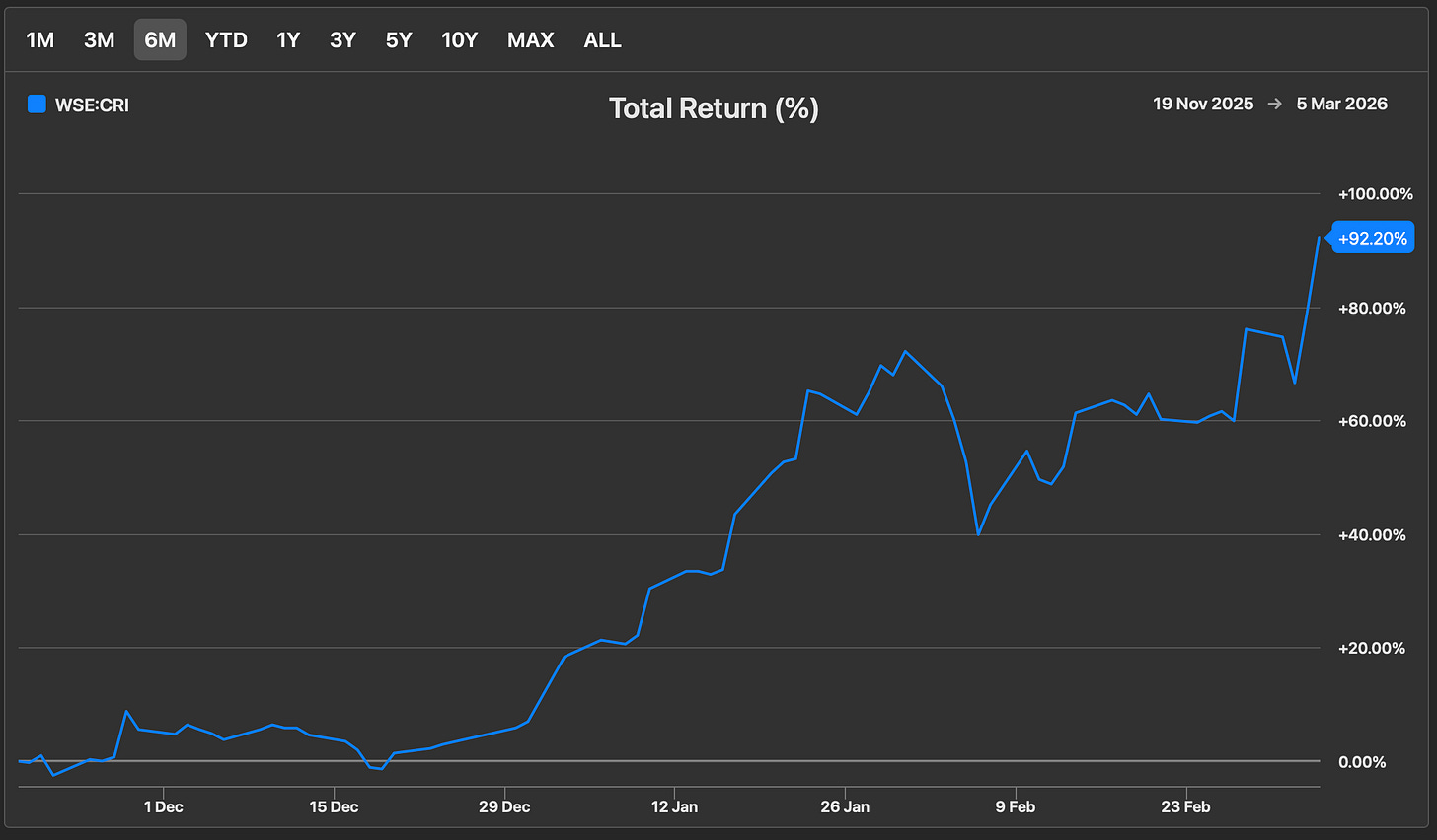 What makes the Creotech story particularly interesting is not only the recent price movement, but the structural forces surrounding it.