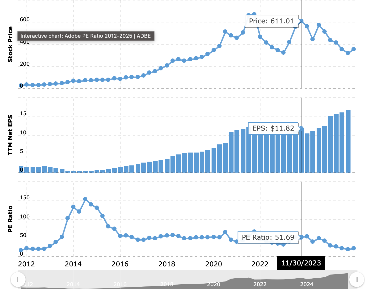 Just think about it: two years ago, Adobe was trading at around $611 per share, with TTM Net EPS of $11.81.